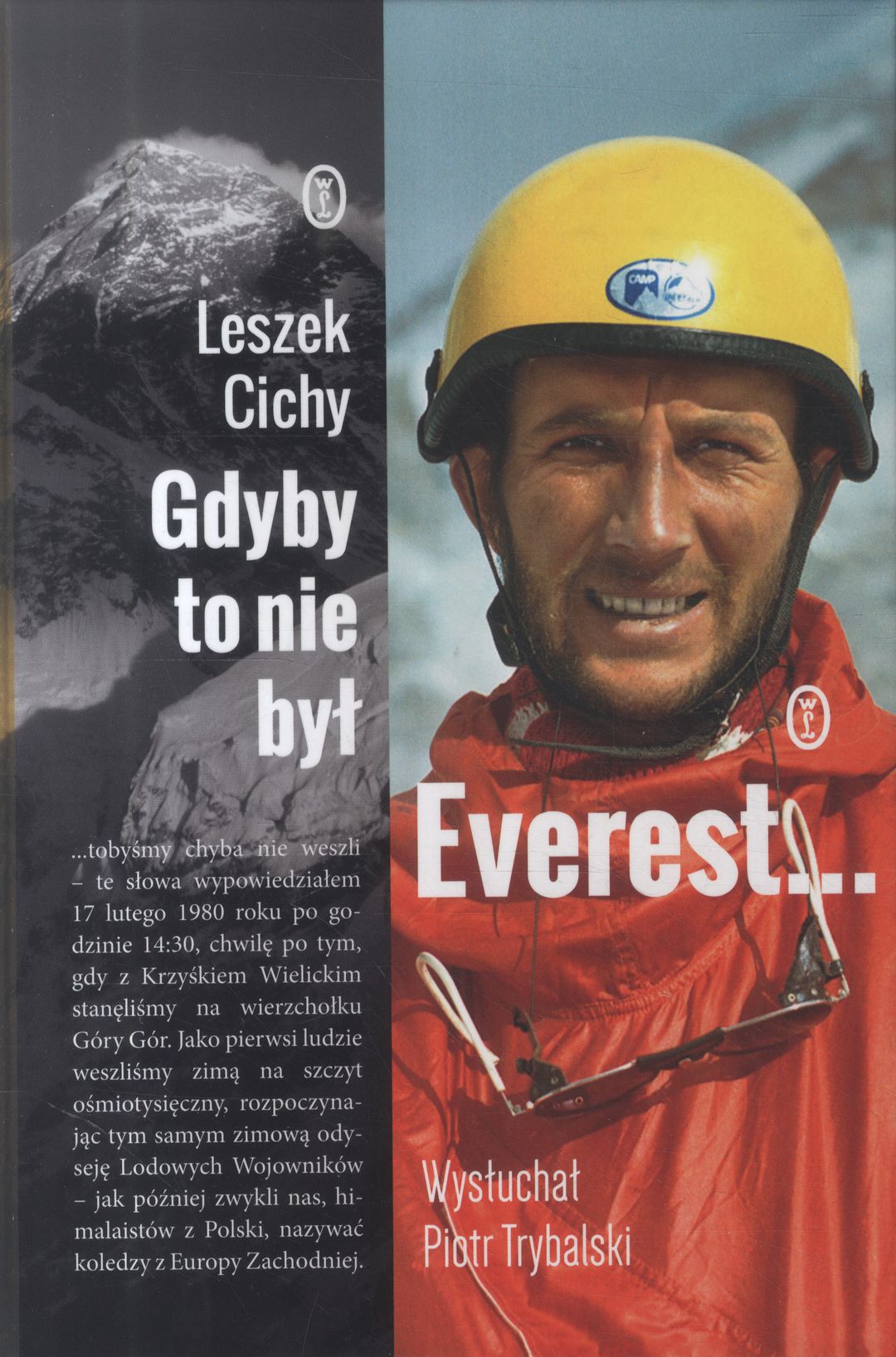 Historia pierwszego zimowego wejścia na Mount Everest. Opowieść Leszka Cichego - legendarnego lodowego wojownika. O ambicji, pragnieniu przekraczania granic i sensie eksploracji świata. „Gdyby to nie był Everest, tobyśmy chyba nie weszli“ - to słynne zdanie wypowiedział Leszek Cichy 17 lutego 1980 roku. Tego dnia wraz z Krzysztofem Wielickim dokonał czegoś, co wydawało się niemożliwe. Jako pierwsi ludzie stanęli zimą na szczycie ośmiotysięcznika. I to od razu najwyższego! Jak do tego doszło? Dlaczego polscy himalaiści zdecydowali się oblegać szczyt Góry Gór zimą? Przecież było powszechne przekonanie, że Mount Everestu o tej porze roku zdobyć się nie da. Grupa śmiałków dowodzona przez Andrzeja Zawadę podjęła wyzwanie. Leszek Cichy ze swadą i szczerością opowiada o wydarzeniach sprzed czterdziestu lat. Już opis samych przygotowań do wyprawy w końcówce lat 70. powoduje szybsze bicie serca. I zdumienie - ekipa dysponowała jednym porządnym namiotem szturmowym, a Krzysztof Wielicki wspinał się w… okularach do spawania. Odwaga i strach, racjonalizm i brawura, ambicja, brak pokory i chęć zapisania się w historii z jednej strony, z drugiej - liczne chwile zwątpienia i słabości. Książka "Gdyby to nie był Everest...", ukazująca się w czterdziestą rocznicę pierwszego zimowego wejścia na najwyższą górę świata, to świetny dokument, w którym Leszek Cichy i słuchający jego wspomnień Piotr Trybalski nie tylko odtworzyli całą drogę na szczyt Everestu, ale też uchwycili niezwykły, najważniejszy moment złotej epoki polskiego himalaizmu. [nota wydawcy]