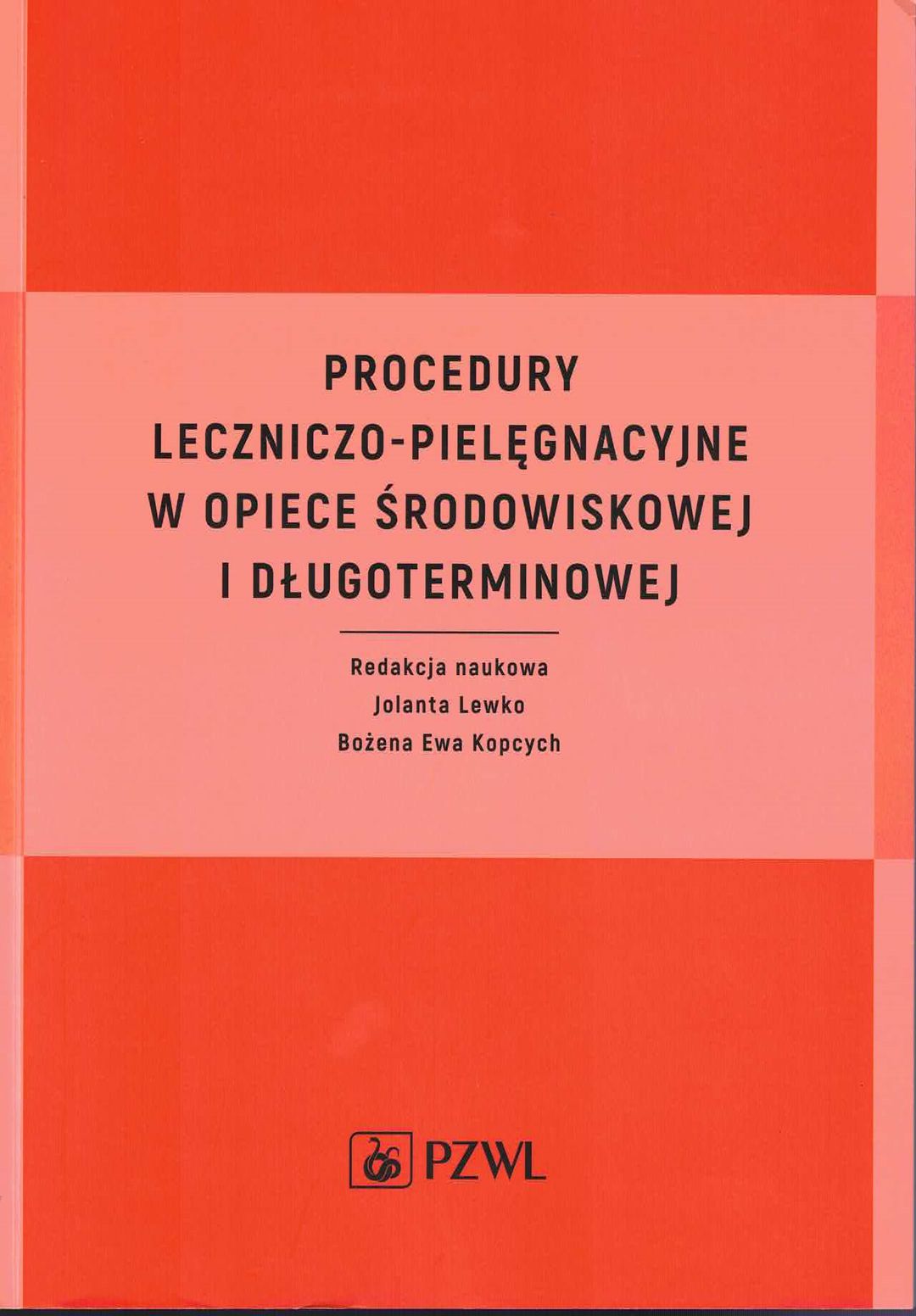 Procedury leczniczo-pielęgnacyjne w opiece środowiskowej i długoterminowej / redakcja naukowa Jolanta Lewko, Bożena Ewa Kopcych. - Wydanie I. - Warszawa : PZWL, 2020. - XIII, [1], 388, [1] strona : ilustracje (kolorowe) ; 24 cm.